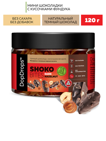 Темный шоколад с кусочками фундука “Шоко Байтс Дарк Хазельнат” (“Shoko Bites Dark Hazelnut”) 120г