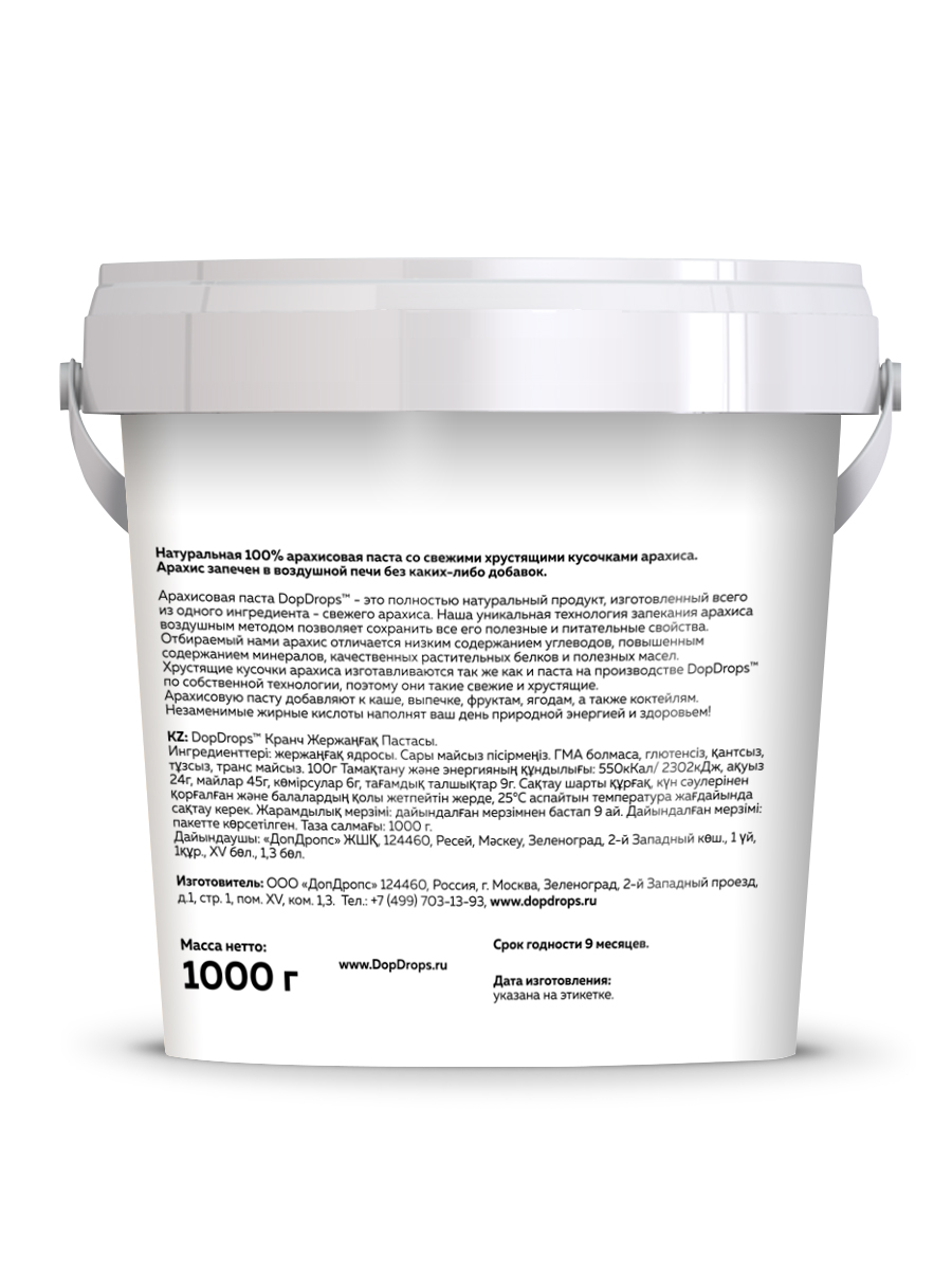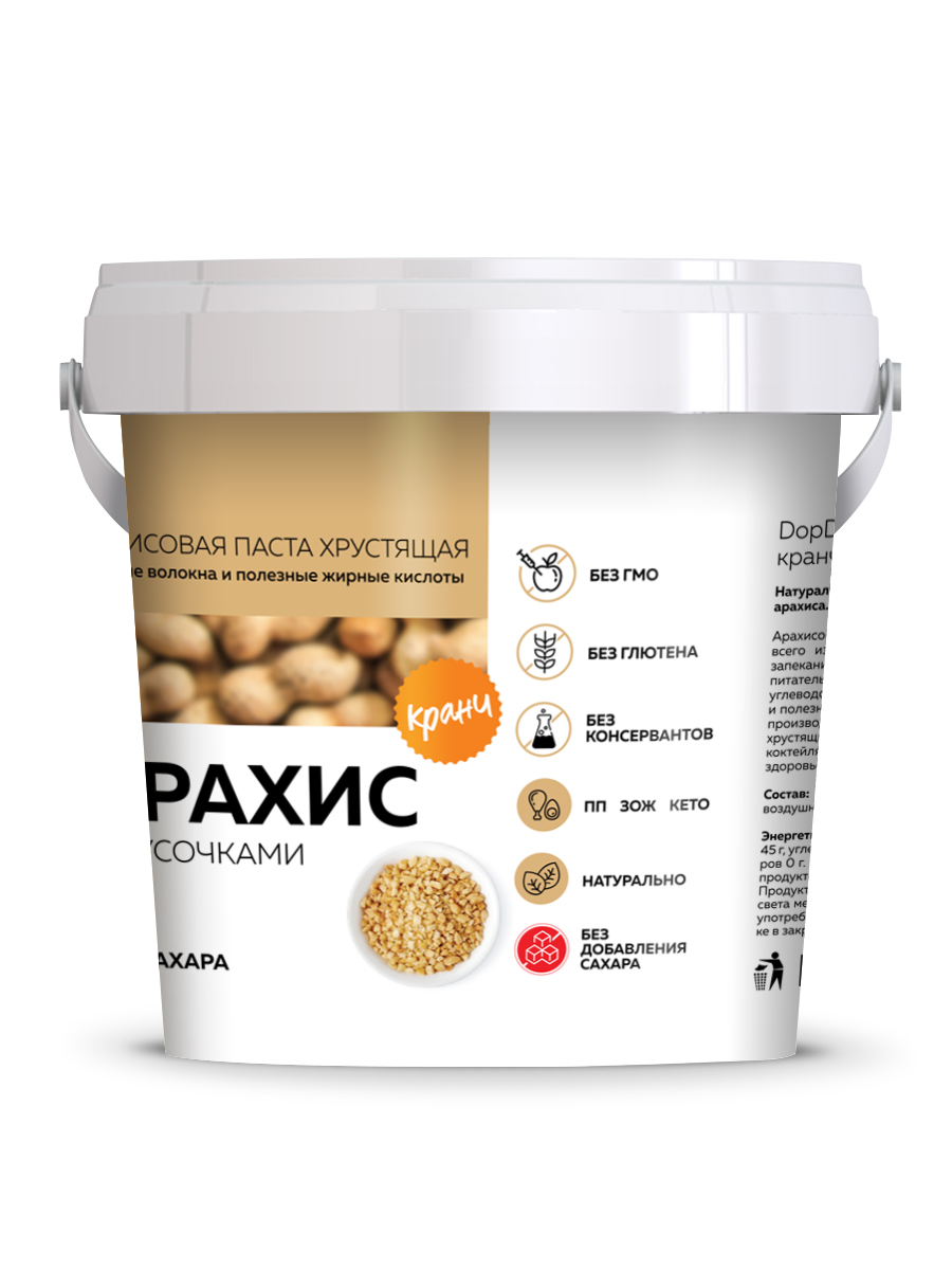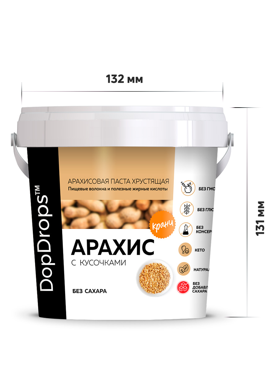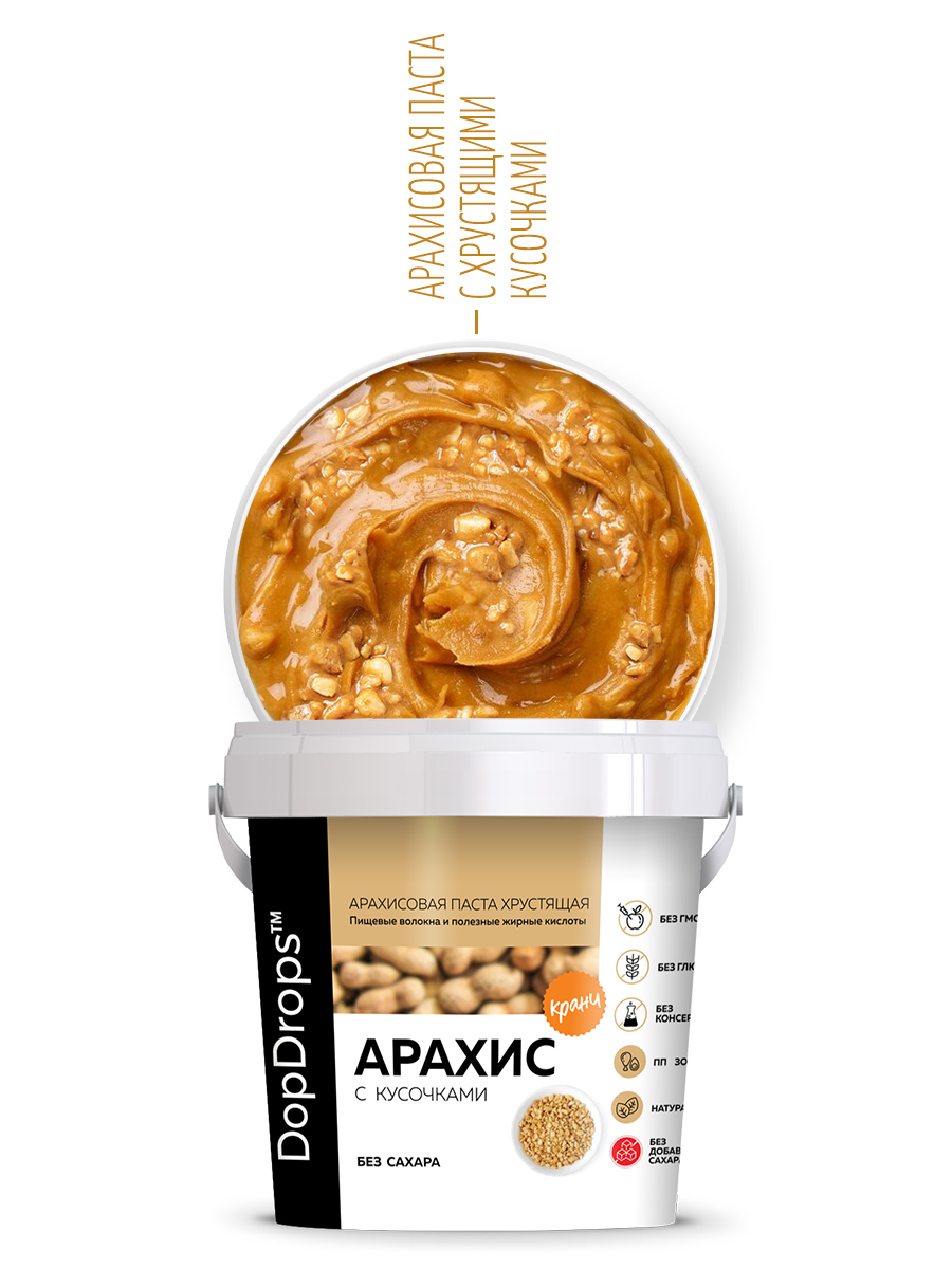 Арахисовая паста с хрустящими кусочками DopDrops – это не только вкусный, но и полезный продукт с огромным количеством витаминов и необходимых микроэлементов. Паста кранч из арахиса без сахара станет незаменимым дополнением к вашему правильному питанию, а также прекрасным угощением для всей семьи.
