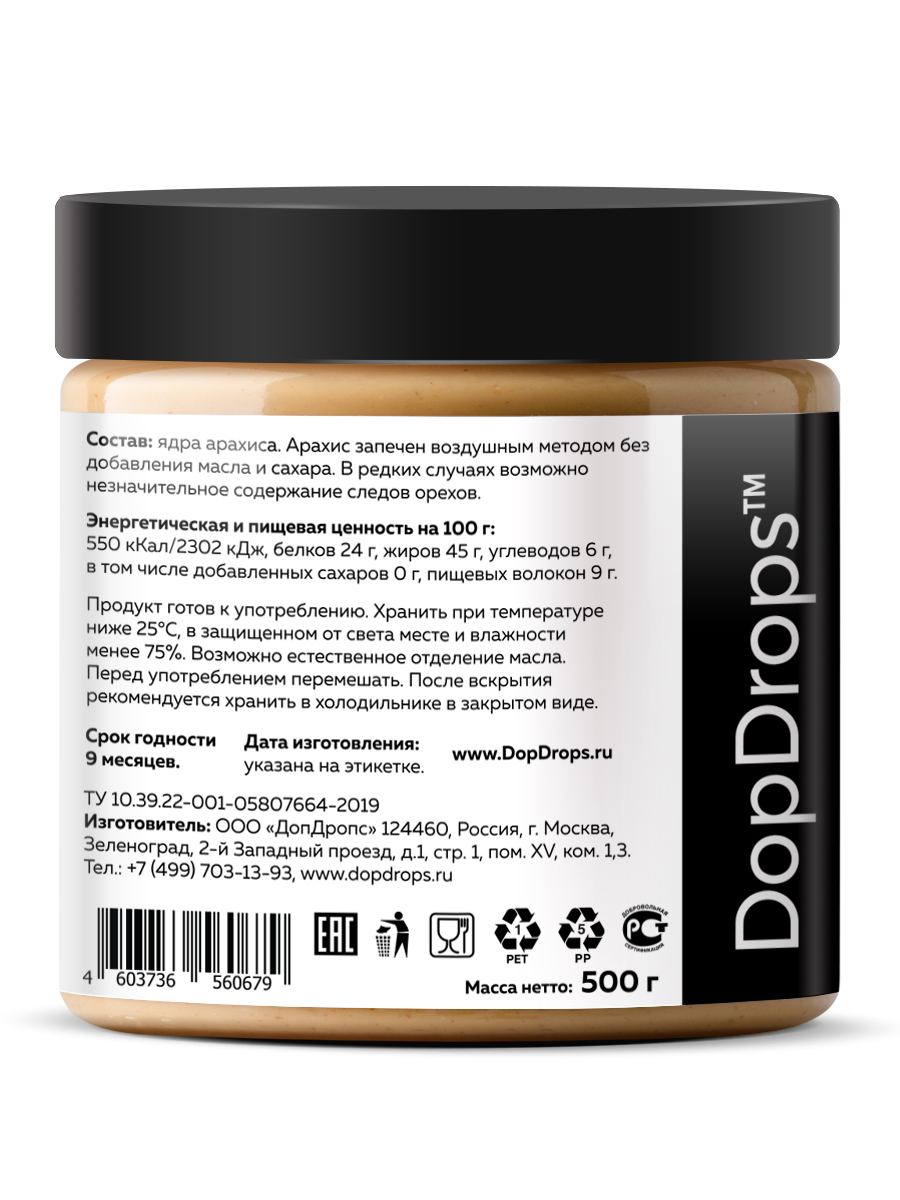Арахисовая паста DopDrops – это не только вкусный, но и полезный продукт с огромным количеством витаминов и необходимых микроэлементов. Паста из арахиса без сахара станет незаменимым дополнением к вашему правильному питанию, а также прекрасным угощением для всей семьи.