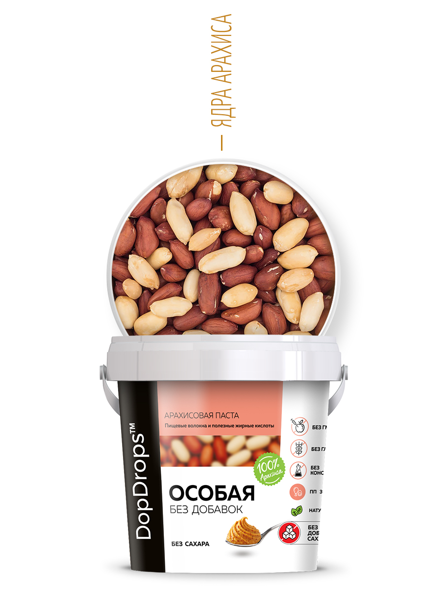Арахисовая паста особая - это натуральное лакомство, которое станет идеальным дополнением вашего здорового рациона. Пасты ДопДропс – вкусные и натуральные продукты без сахара и глютена для тех, кто ценит качество и следит за своим здоровьем.