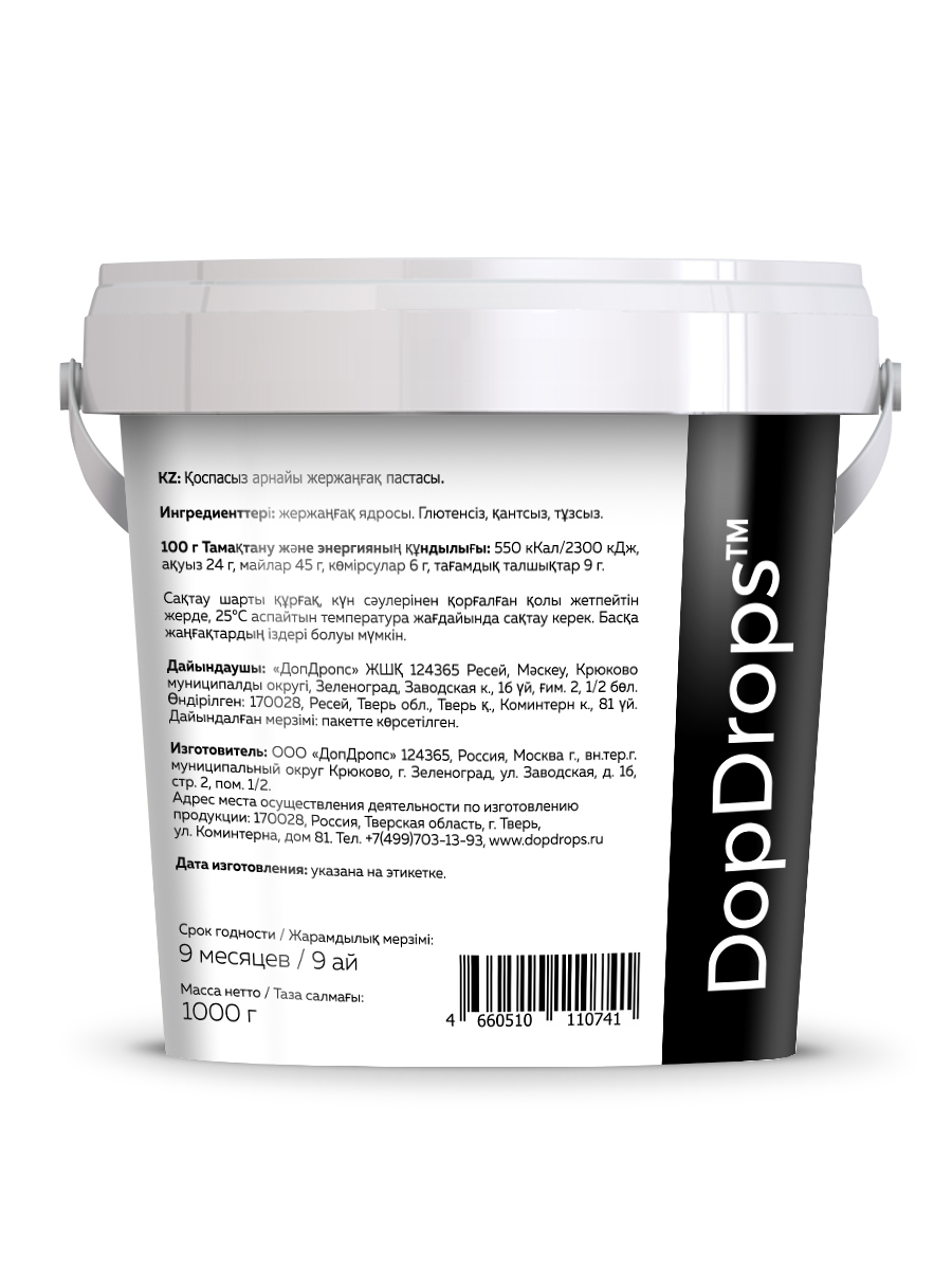 Арахисовая паста особая от DopDrops - это полностью натуральный продукт, изготовленный всего из одного ингредиента - свежего арахиса. Она обладает богатым ореховым вкусом и ароматом, что делает её идеальным дополнением к различным блюдам.