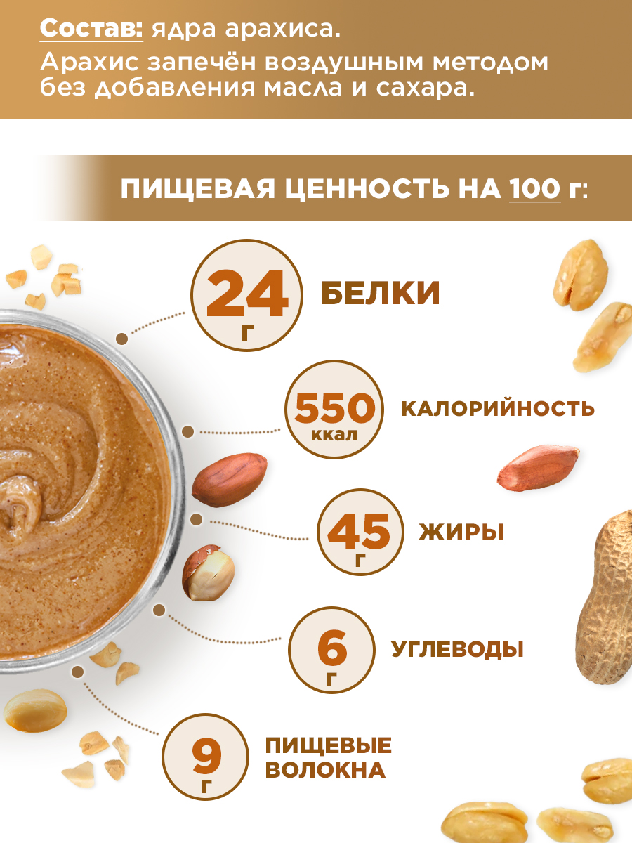 Арахисовая паста без добавок содержит множество полезных питательных веществ, включая белки - природный протеин, здоровые жиры, витамины (например, Е и В3) и минералы (магний, фосфор, калий). Ореховая паста не содержит сахара и имеет уникально низкий гликемический индекс - это по-настоящему диетическим продукт, который подходит для веган и кето диеты, зож, пп. Можно в пост.
