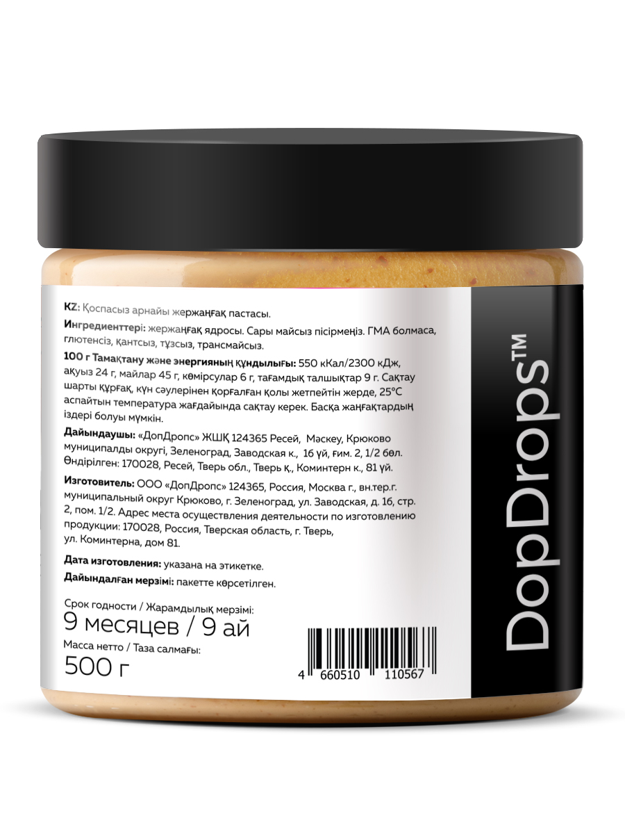 Арахисовая паста особая от DopDrops - это полностью натуральный продукт, изготовленный всего из одного ингредиента - свежего арахиса. Она обладает богатым ореховым вкусом и ароматом, что делает её идеальным дополнением к различным блюдам.