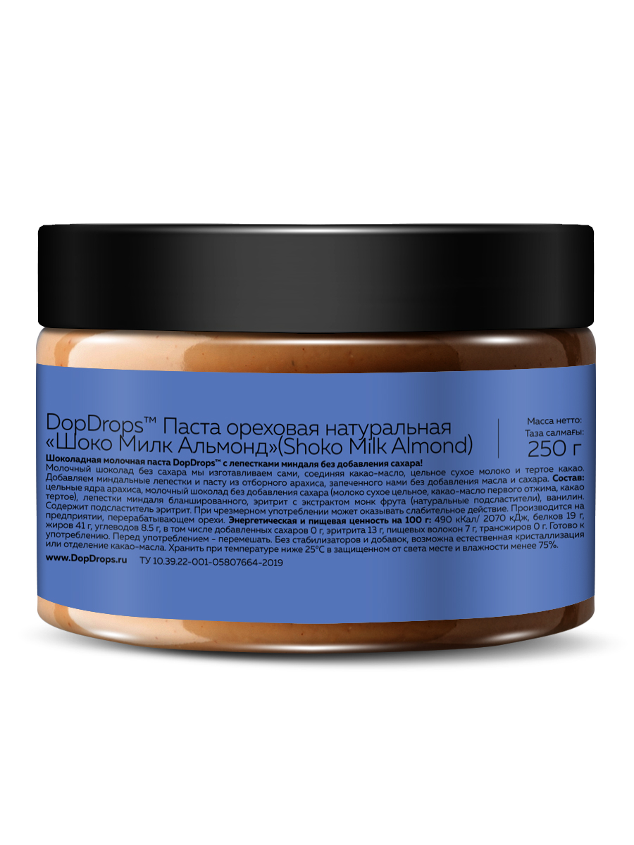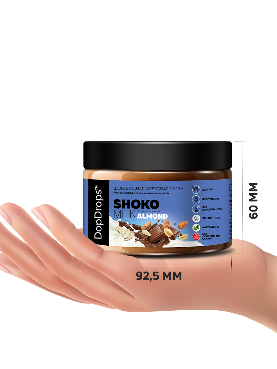 DopDrops Shoko Milk Almond — это шоколадная паста без сахара и глютена, которая сочетает пользу и вкус! Наслаждайтесь сладким без вреда для здоровья.
