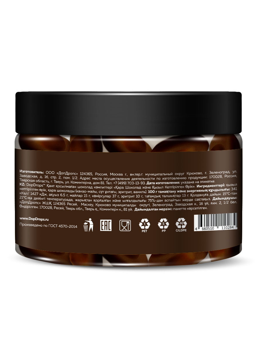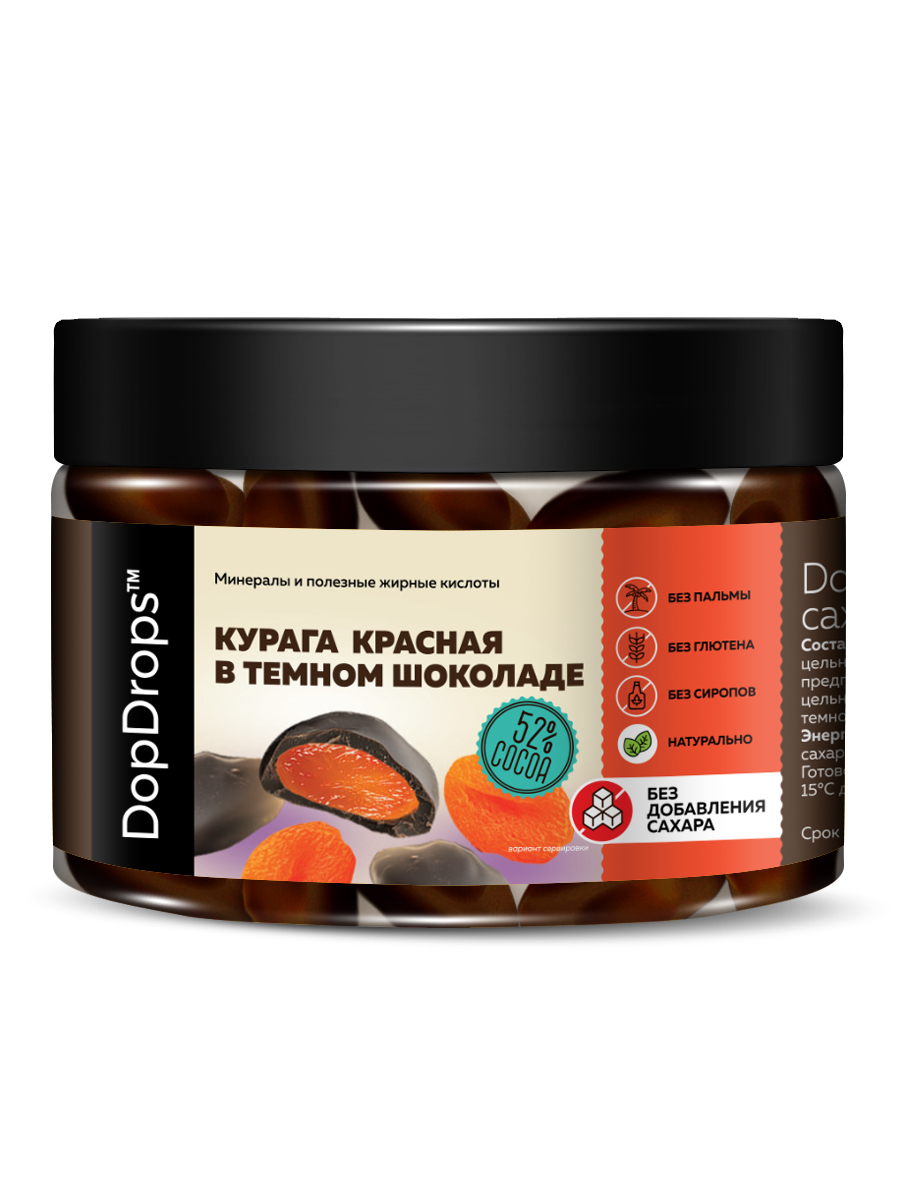 DopDrops™ с темным шоколадом и курагой — это не конфеты. Это ваша ежедневная порция солнечной энергии и уверенности в том, что лучшее — всегда натуральное.