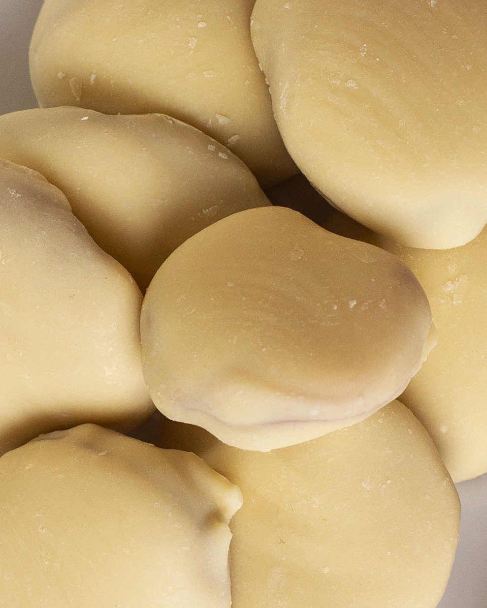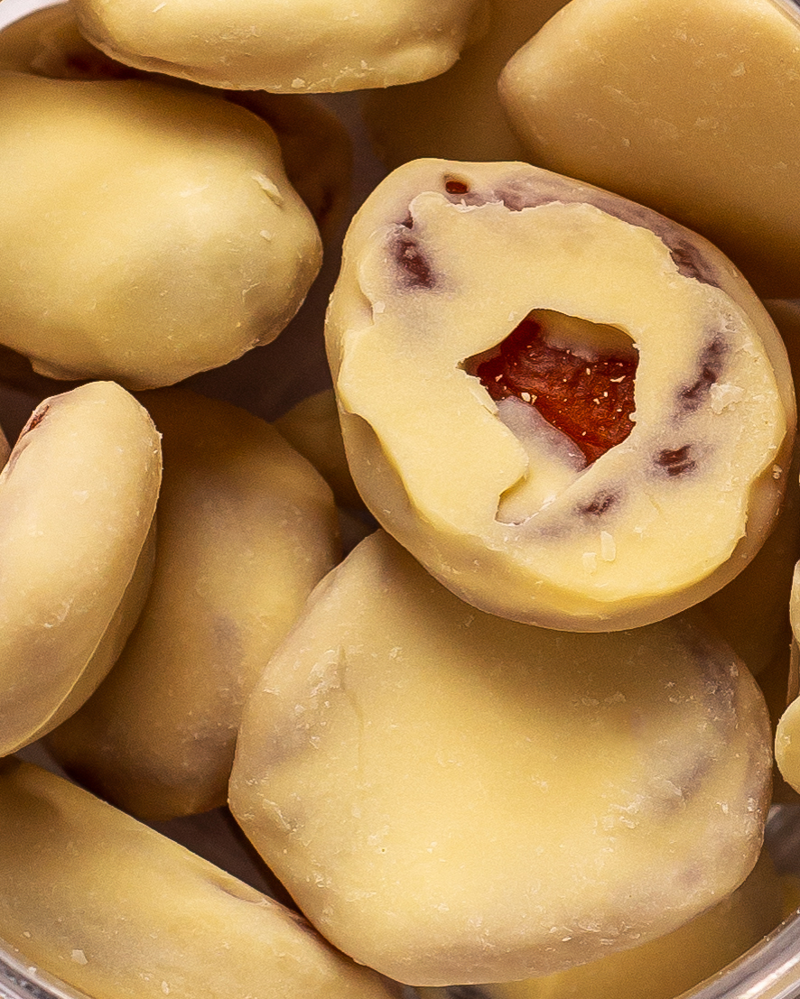 Обращаем ваше внимание, что это 100% натуральный белый шоколад без добавок, а не глазурь, для него естественно легкое поседение. Рекомендуем хранить конфеты с сухофруктами при температуре от 15 C° до 21 C°, в защищенном от света месте. Качество гарантировано при соблюдении условий хранения.