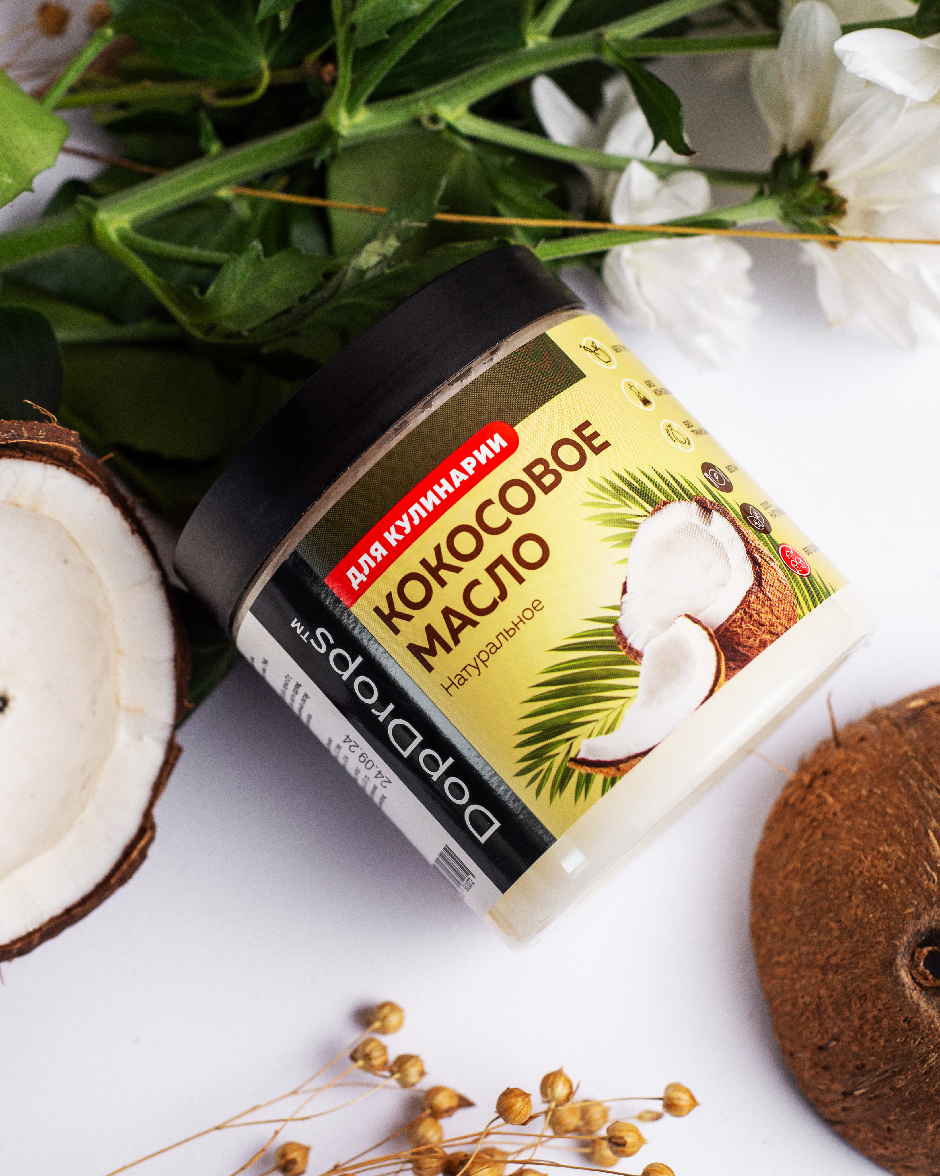 100% Нерафинированное масло кокоса первого холодного отжима DopDrops - полностью натуральный прод...