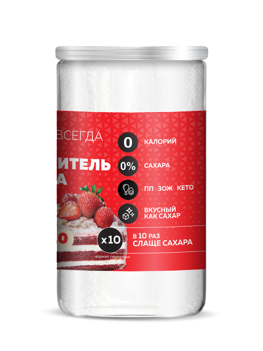Состав продукта: эритрит (подсластитель), сукралоза (подсластитель). Содержит подсластитель эритрит. При чрезмерном употреблении может оказывать слабительное действие. В упаковку вложена мерная ложка.