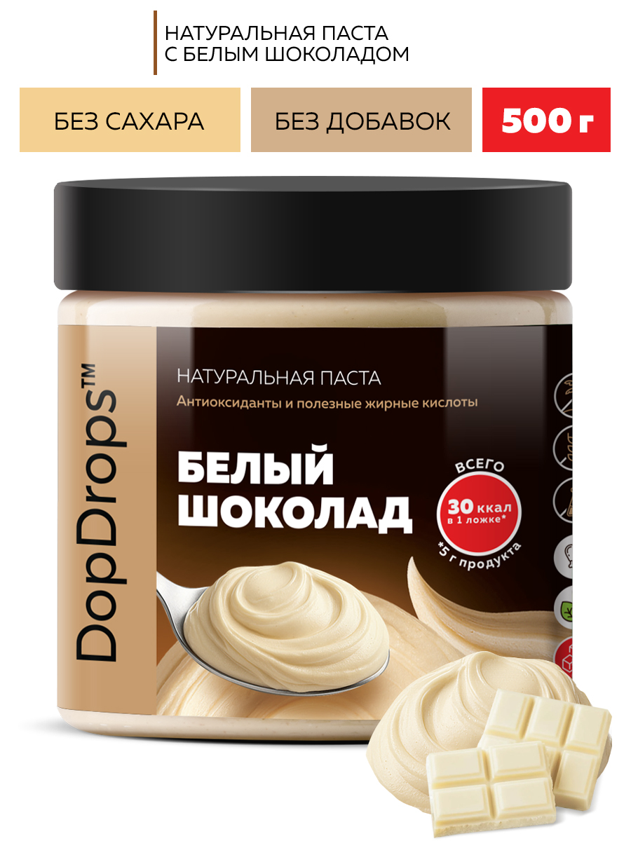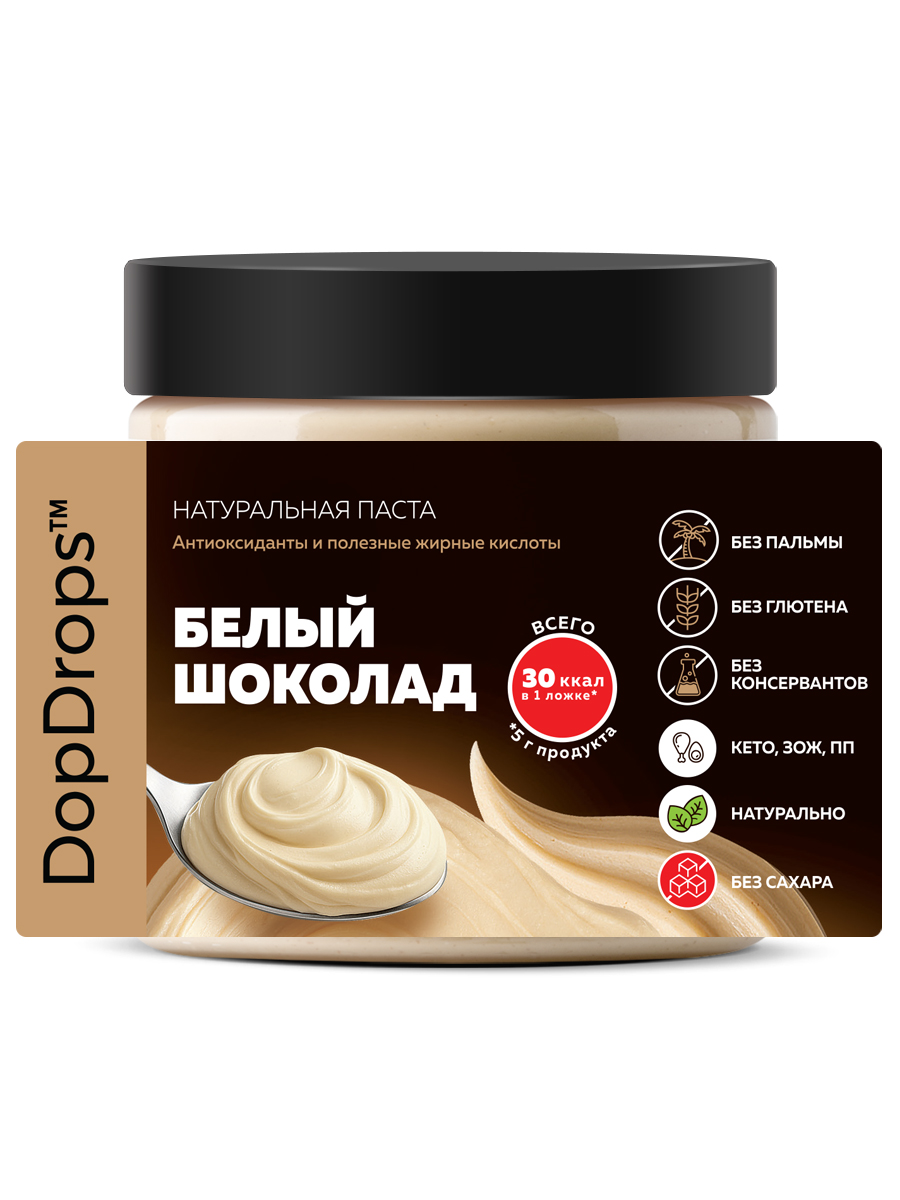 Паста с белым шоколадом DopDrops - максимум натурального вкуса, минимум чувства вины! Польза без ущерба удовольствию.