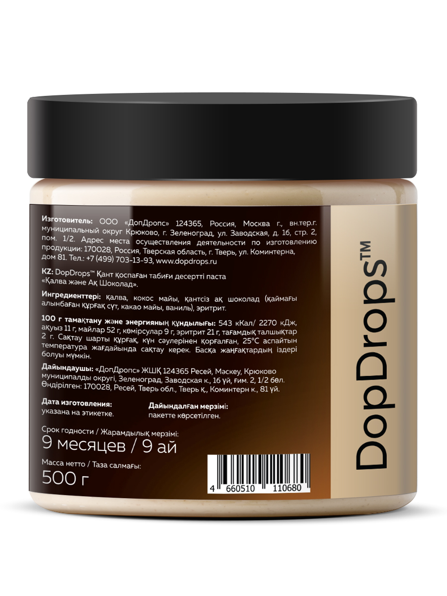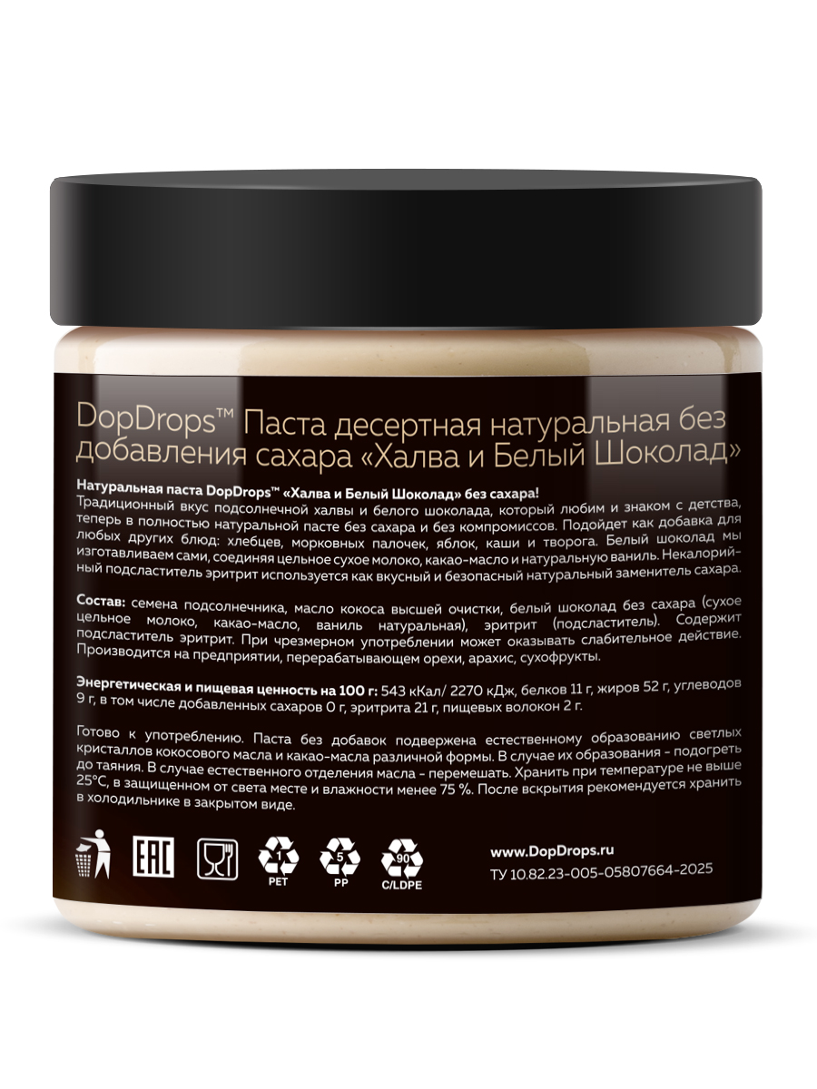 Шоколадная паста DopDrops «Халва и Белый Шоколад» — любимый вкус детства без сахара и компромиссов.