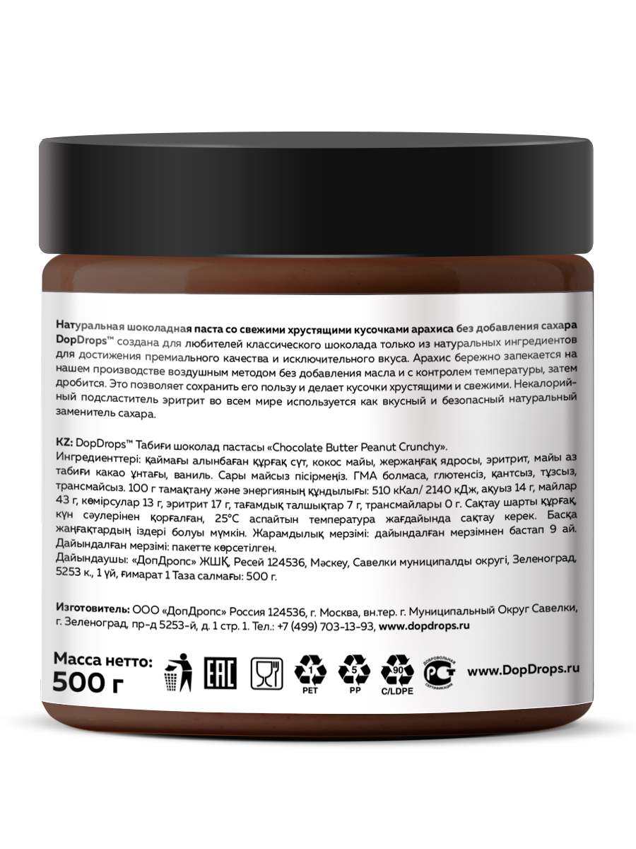 Выбирайте кето продукты нового поколения — паста шоколадная без сахара натуральная ДопДропс Chocolate Butter кранчи с арахисом. Оцените насыщенный вкус, натуральный состав и уникальную хрустящую текстуру!